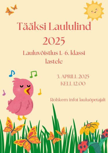 Lauluvõistlus Tääksi Laululind on mõeldud 1.-6. klassidele ja toimub 3. aprillil Tääksi koolimajas.