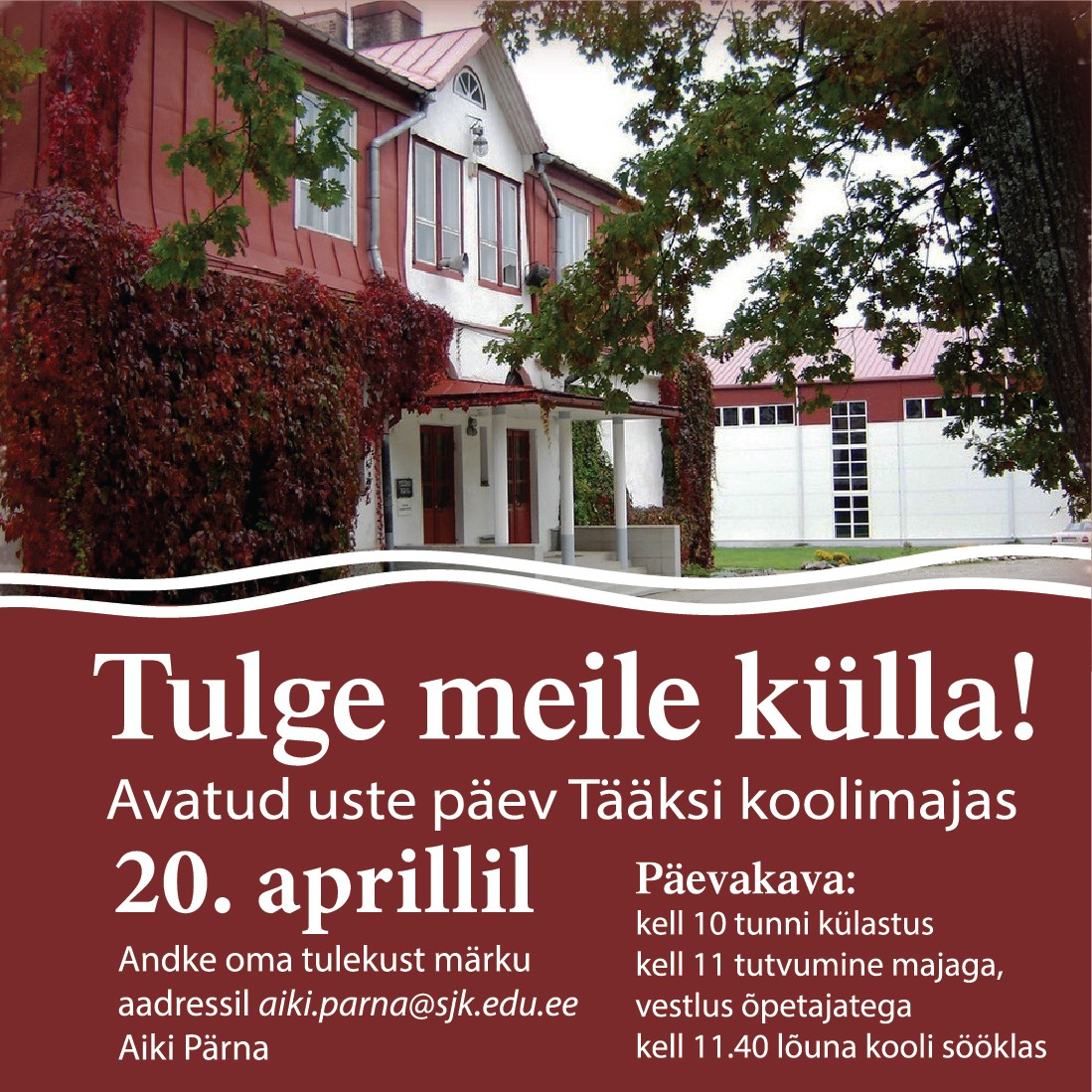 20. aprillil toimub Suure-Jaani Kooli Tääksi tegutsemiskohas avatud uste päev uutele õppuritele. Ava foto Viimati muudetud 19.04.2026.