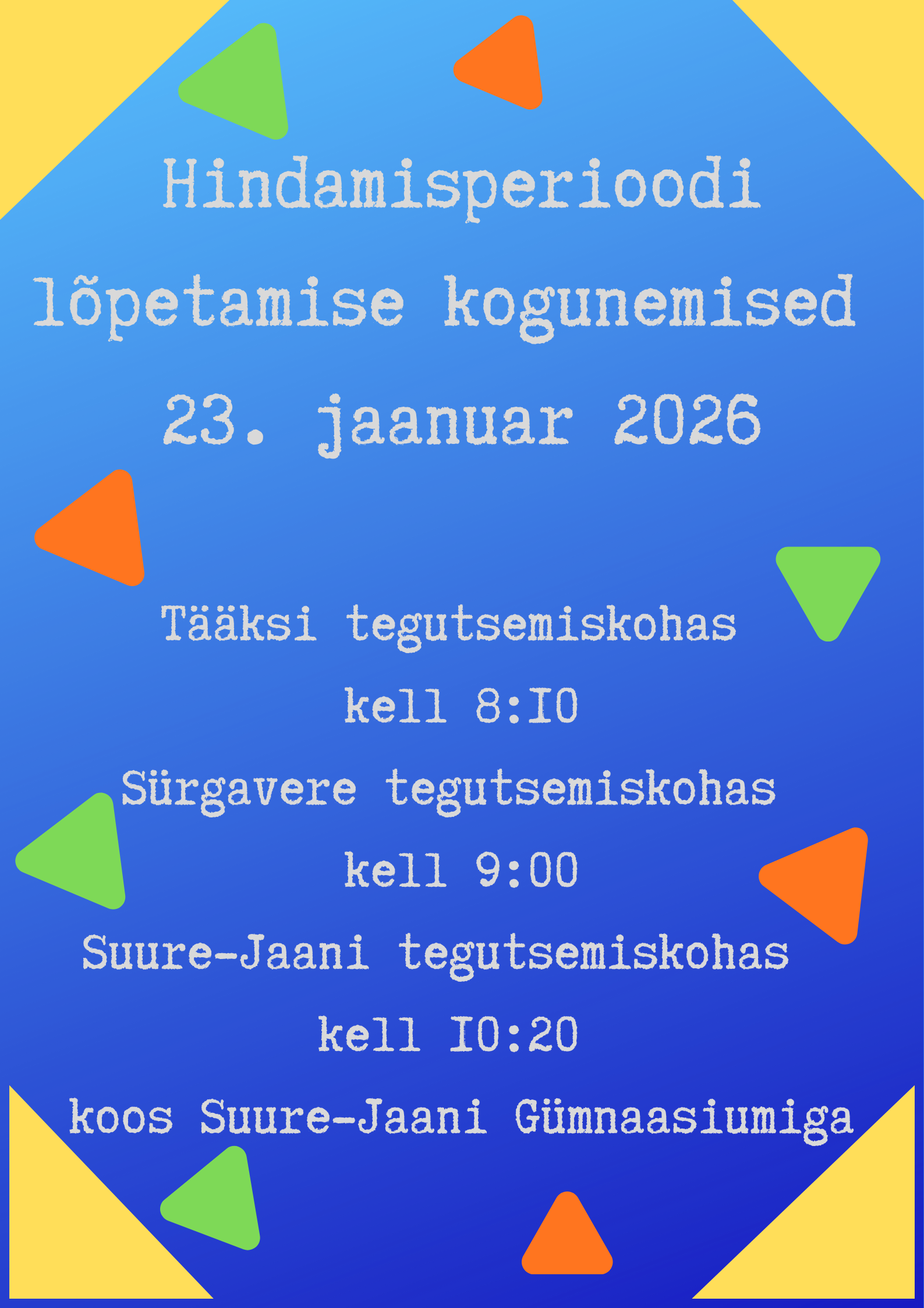 Info hindamisperioodi lõpetamise kohta on saadetud Stuudiumisse Ava foto Viimati muudetud 15.01.2026.