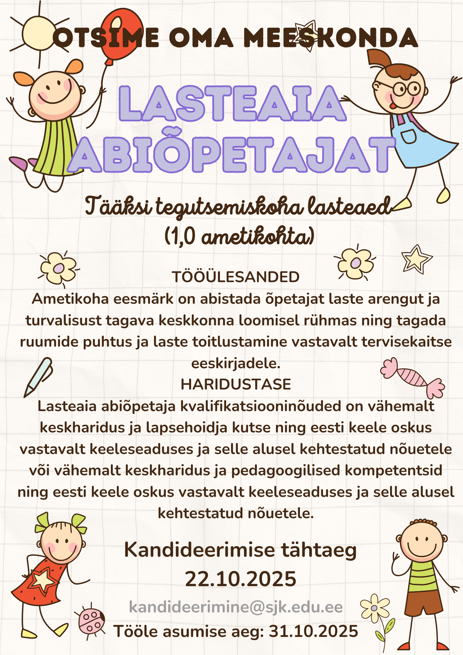 Ettelugemise päev Loomise kuupäev 10.10.2025 Autor Huvijuht Pakume tööd Loomise kuupäev 01.10.2025 Autor Huvijuht Õpetajate päev Loomise kuupäev 01.10.2025 Autor Huvijuht Mihklipäeva laat Loomise kuupäev 25.09.2025 Autor Huvijuht Vaata rohkem