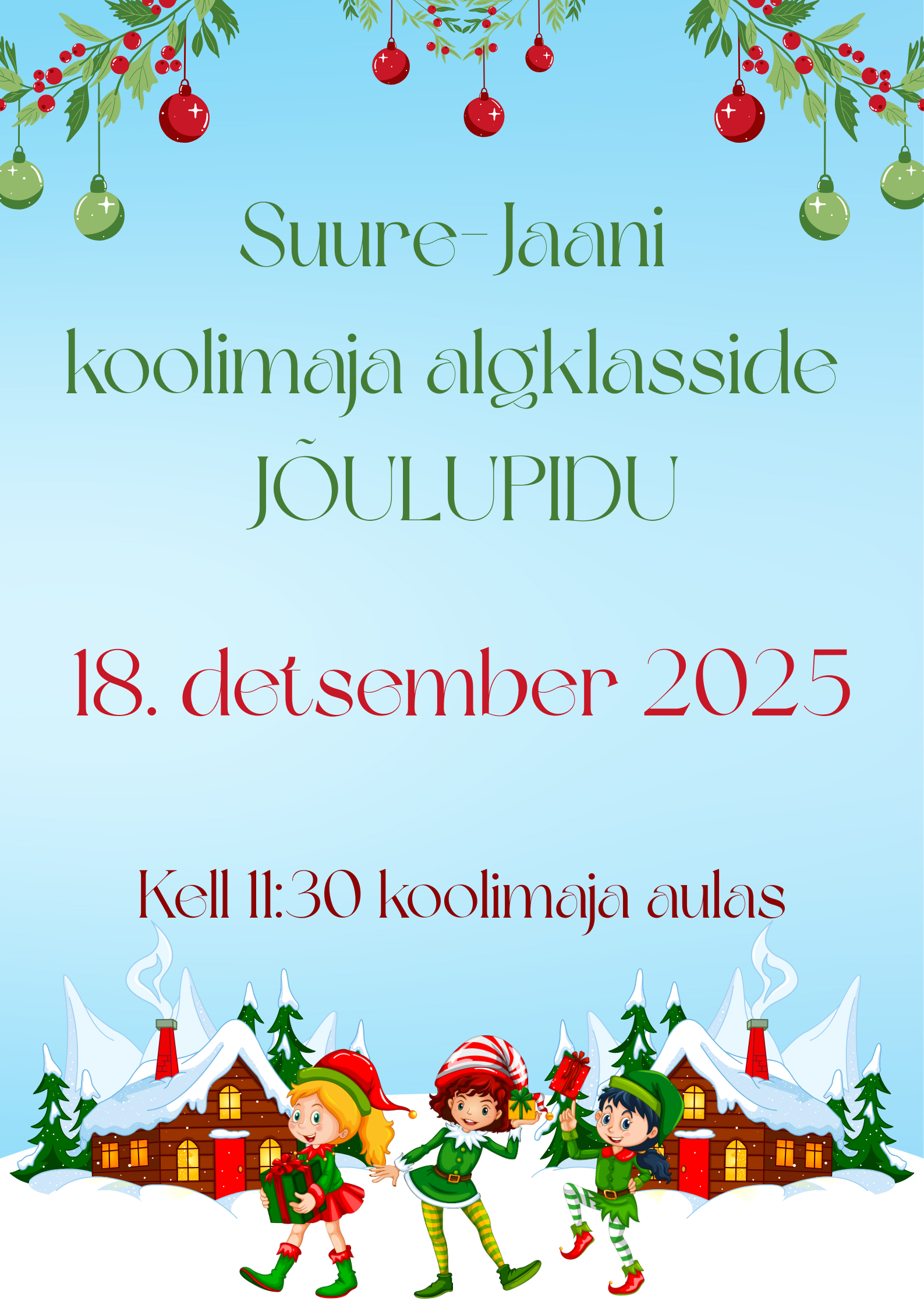 Suure-Jaani koolimaja algklasside jõulupidu 18. detsembril kell 11:30 Suure-Jaani koolimaja aulas. Ava foto Viimati muudetud 15.12.2025.