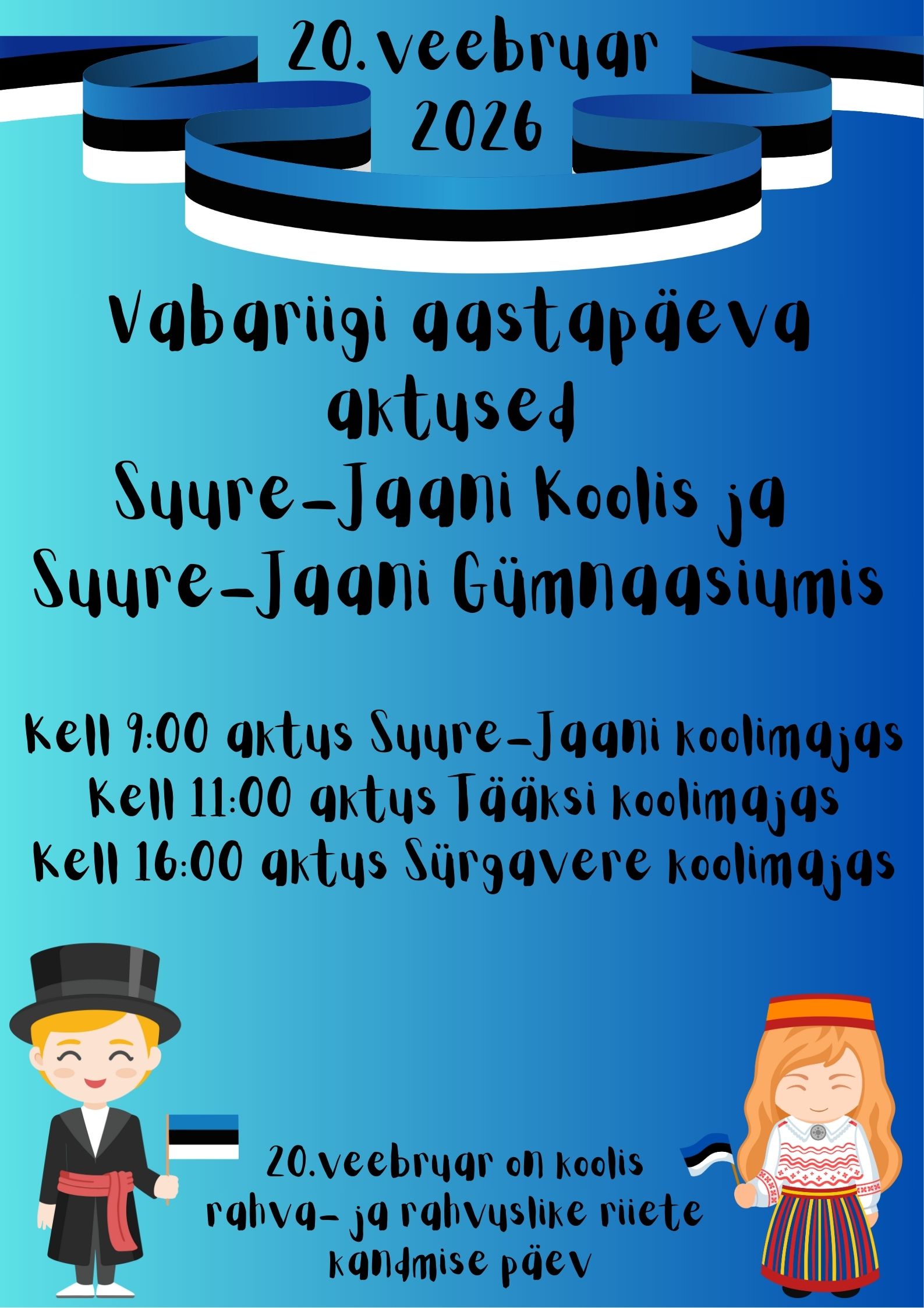 Oskar Looritsa näitus Loomise kuupäev 06.02.2026 Autor Huvijuht Esimese hindamisperioodi lõpetamine Loomise kuupäev 23.01.2026 Autor Huvijuht Otsime kokka Loomise kuupäev 20.01.2026 Autor Huvijuht Eelkool Loomise kuupäev 20.01.2026 Autor Huvijuht Vaata rohkem