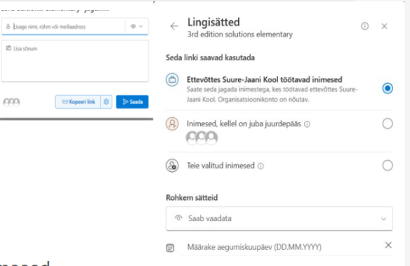 hammasratas kopeeri link kõrval - saab määrata, kes selle lingi kaudu ligi saavad
