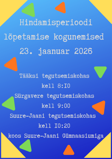 Esimese hindamisperioodi lõpetamise info on saadetud Stuudiumisse.